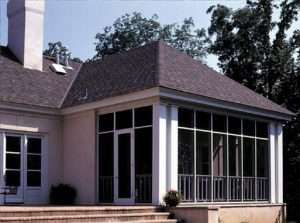 This enclosure roof complements many homes in Florida because it shares the same roof design. It can stand alone and surround a pool or attach to an open patio that has a gable.